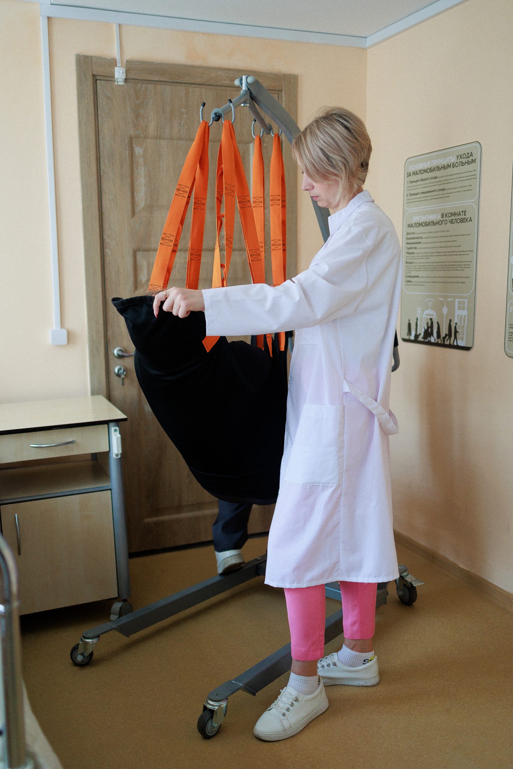Выбранный комплект доказал свою эффективность в условиях учебного класса, позволяя проводить практические занятия по перемещению пациентов в быту и обучать правилам использования инвалидного подъемника.
