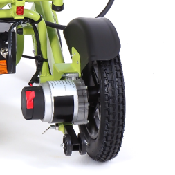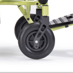 Передние колеса с массивной цельнолитой покрышкой не требуют дополнительного обслуживания и подкачки, а также не боятся проколов. Задние колеса на литом алюминиевом диске с полированными гранями - накачиваемые для большей мягкости хода. Такое сочетание колес и подвески делает ход легким и комфортным.