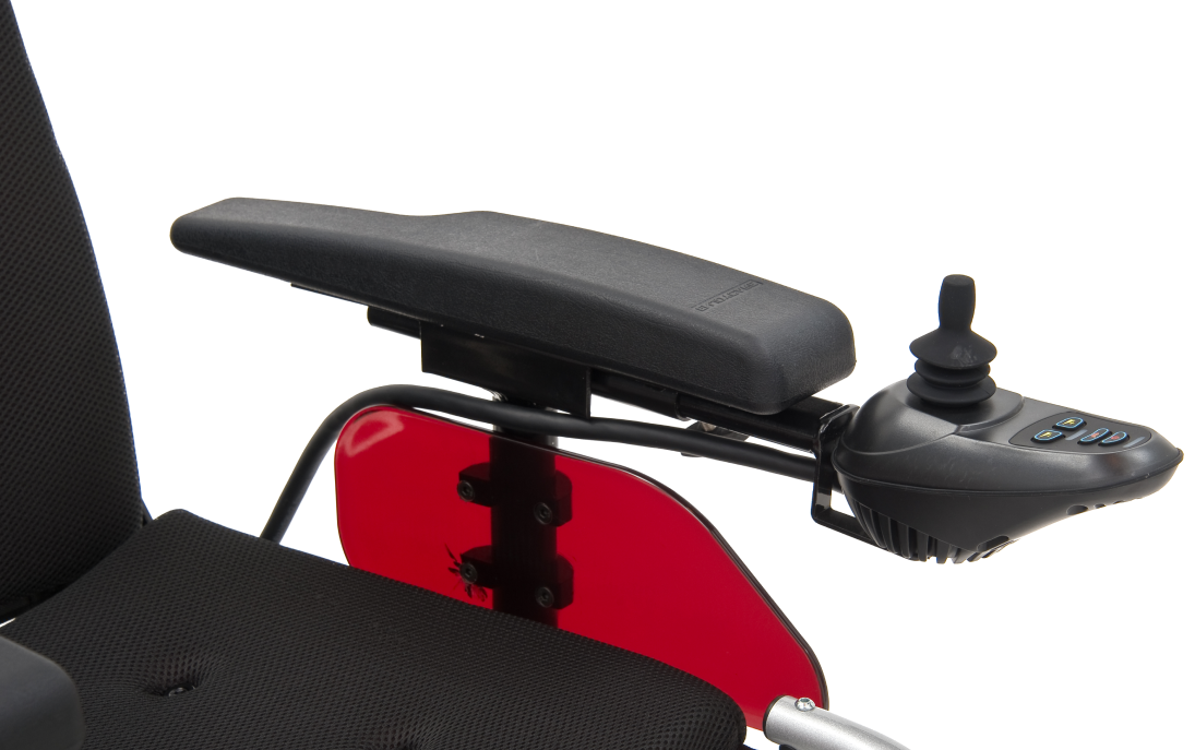 Широкие и очень комфортные подлокотники, выполненные из мягкого литого материала, поддерживают руку по всей длине предплечья, длина подлокотника составляет 41 см. Подлокотники также имеют регулировку по высоте и ширине, что позволяет разместиться с комфортом людям любого роста и комплекции. Регулировки спинки и подлокотников в комплексе с энергоемкой подвеской делают длительные прогулки приятными и неутомительными.