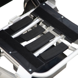 Основание спинки и сиденья - ременное, что позволяет индивидуально настраивать жесткость под потребности каждого пользователя. Сверху на сиденье имеется объемная подушка из дышащего материала, а на спинке - мягкая съемная накладка. Все это позволяет без труда осуществлять гигиеническую обработку или стирку, снимать комплектующие для замены. Ручка для сопровождающего регулируется по высоте, а саму коляску в сложенном состоянии удобно использовать и катить как багаж по аналогии с чемоданом.