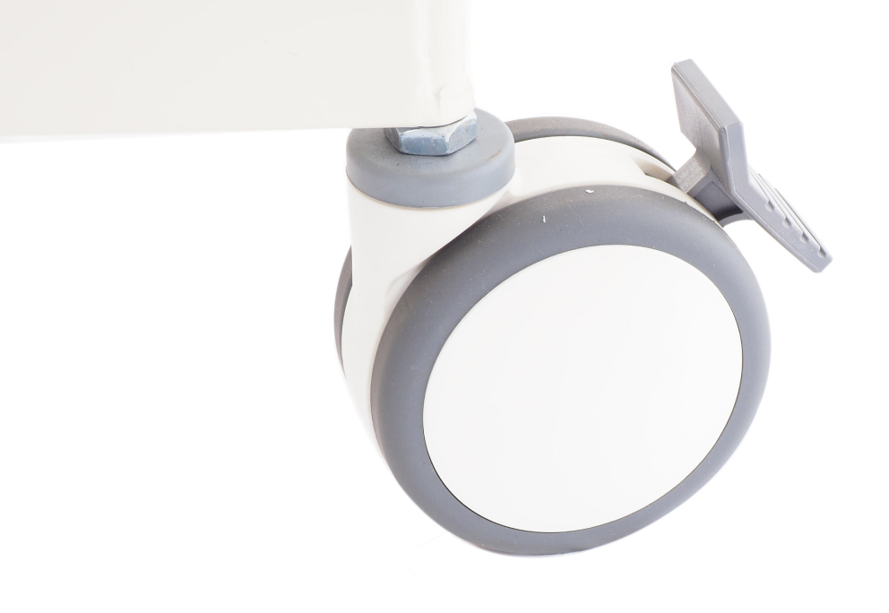 Самоориентирующиеся двойные колеса имеют немаркое резиновое покрытие, а специальные широкие ударопрочные колпаки увеличивают износостойкость колёс при интенсивном использовании, что позволяет использовать их в течение долгого срока без необходимости замены.